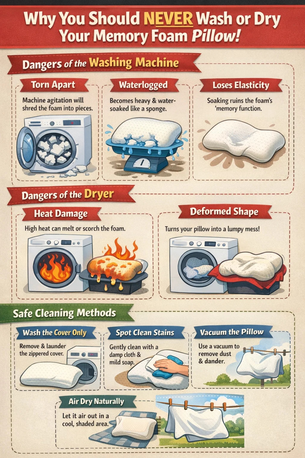 কেন একটি ড্রায়ার মেমরি ফোম বালিশ জন্য বিপজ্জনক?