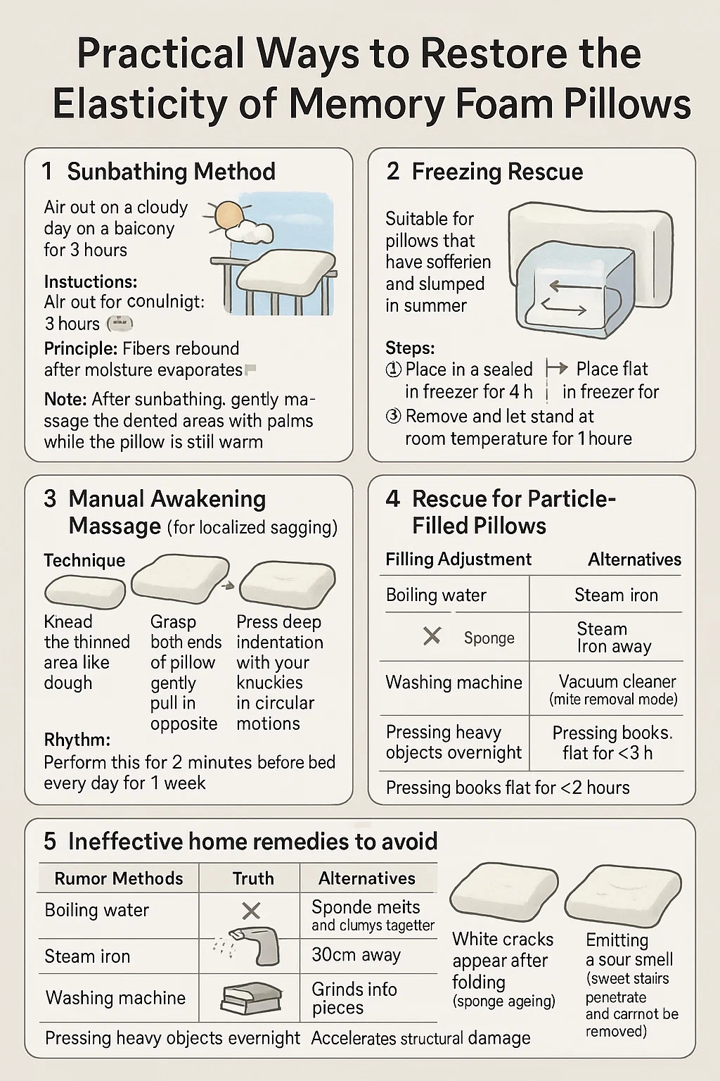 এর স্থিতিস্থাপকতা পুনরুদ্ধার করার জন্য এখানে কিছু ব্যবহারিক উপায় রয়েছে মেমরি ফোম বালিশ :