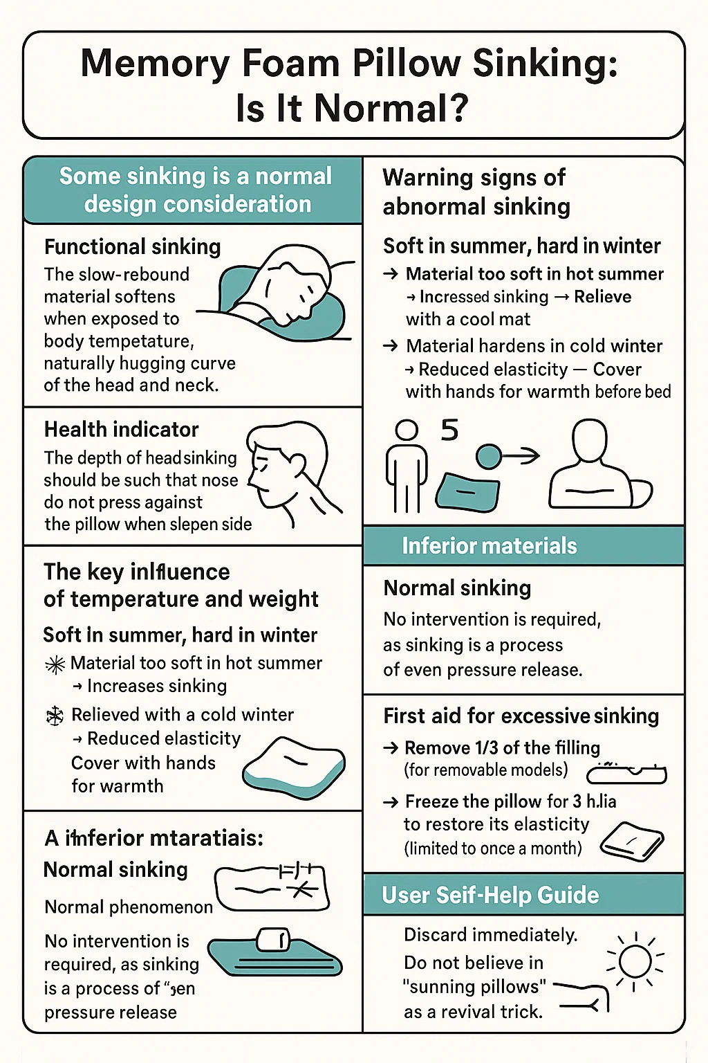 অতিরিক্ত ডুবে যাওয়ার জন্য প্রাথমিক সহায়তা: Fili ফিলিংয়ের 1/3 অপসারণ করুন (অপসারণযোগ্য মডেলগুলির জন্য) → অস্থায়ী সমর্থনের জন্য বালিশের নীচে একটি ভাঁজ তোয়ালে রাখুন → বালিশটি তার স্থিতিস্থাপকতা পুনরুদ্ধার করতে তিন ঘন্টা স্থির করুন (মাসে একবারে সীমাবদ্ধ)।